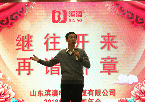 最后公司總經(jīng)理董桂光先生作重要總結(jié)發(fā)言。他指出,2018年公司在全體員工的努力下取得了喜人的業(yè)績。各項重點業(yè)務(wù)有明顯的推進。對于評選出的先進個人大家要向他們學(xué)習,做好自己的本職工作,把工作做到精益求精。他勉勵大家每天都要有進步,踏踏實實地把自己的每一項細小的工作做好。并闡述了2019年的工作計劃。他提出2019年是公司建廠十周年的大慶,我們要借助這個機會做好品牌宣傳,擴大濱澳品牌的知名度和影響力;要規(guī)范公司制度,并重在落實,打造一支有紀律的鐵軍。他同時強調(diào)各部門要計劃好自己新一年的工作,要不斷地提升自我,超越自我。最后他要求全公司團結(jié)一致,為濱澳更好的明天一起努力。